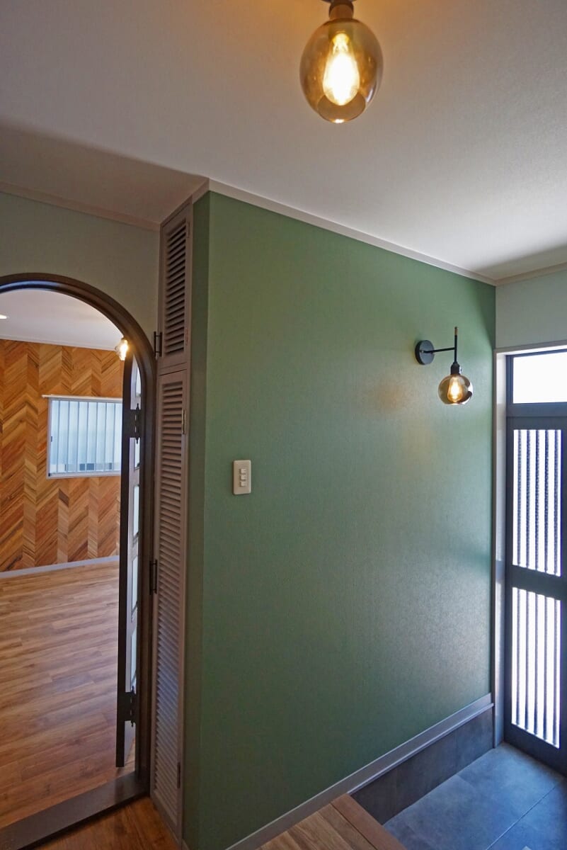 ・玄関回り  → 扉と回りのタイル壁の塗装