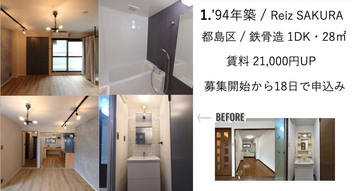 その他、築35年(’91年築)の物件で賃料5.2万円UPなどの事例もございます。